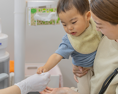 フッ素には歯質を強化する作用があり、むし歯予防に効果的です。お子さんの場合は、1歳6か月頃からご利用可能です。年齢を問わず、ぜひ定期的にご利用ください。